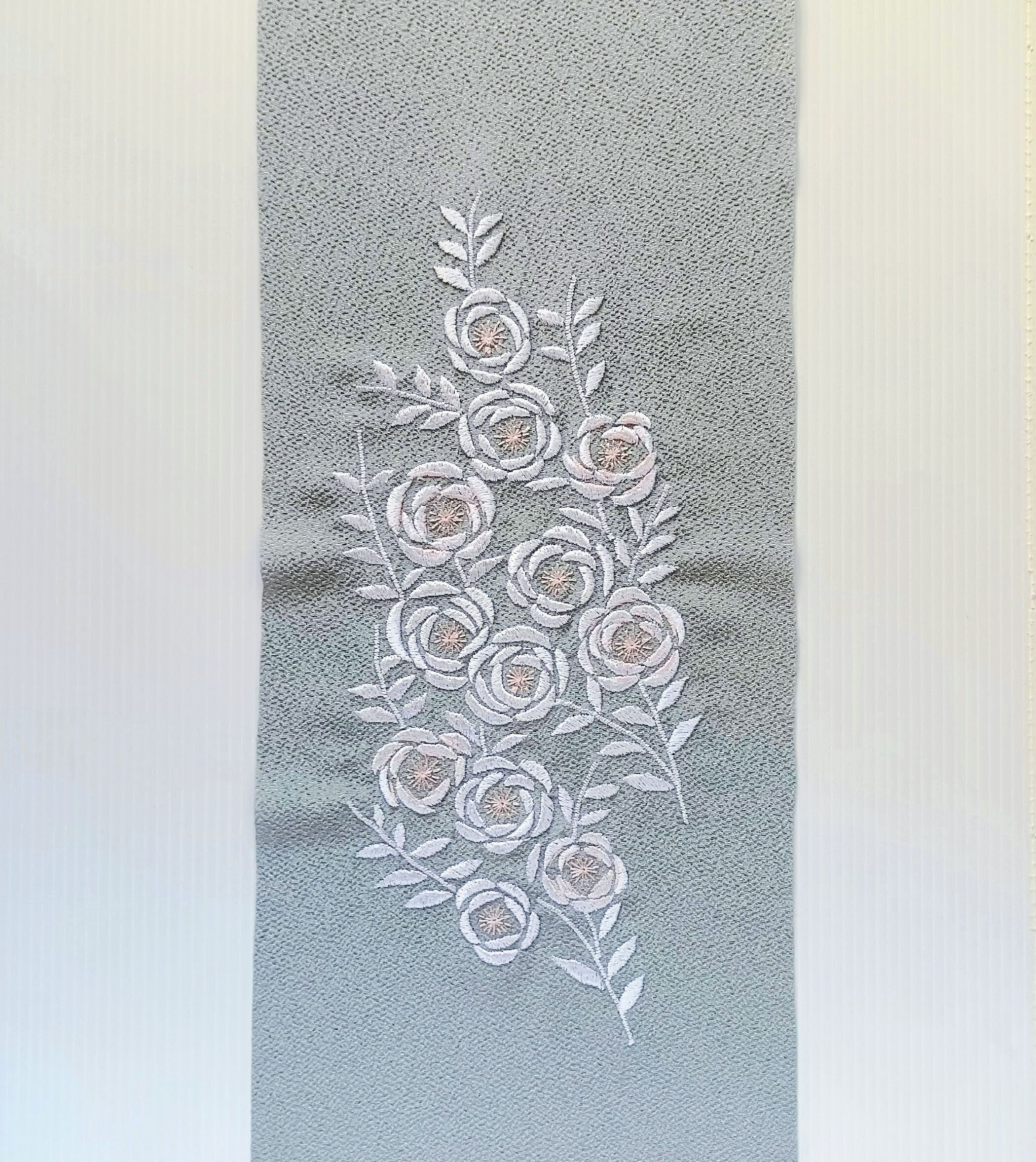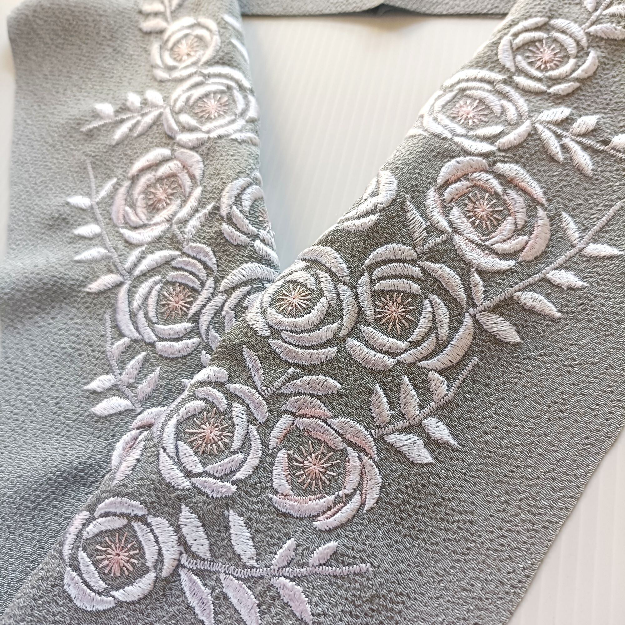 薔薇の刺繍は立体感があり、着物コーディネートに華を添えてください。