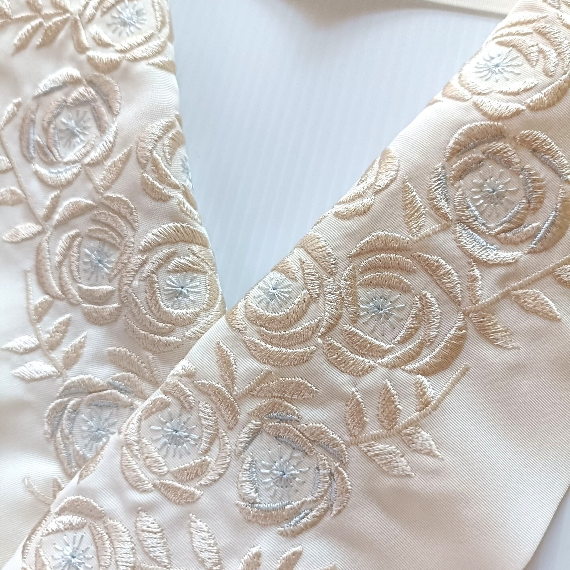 刺繍半襟 アンティーク復刻 巻き薔薇刺繍 生成り 限定2枚