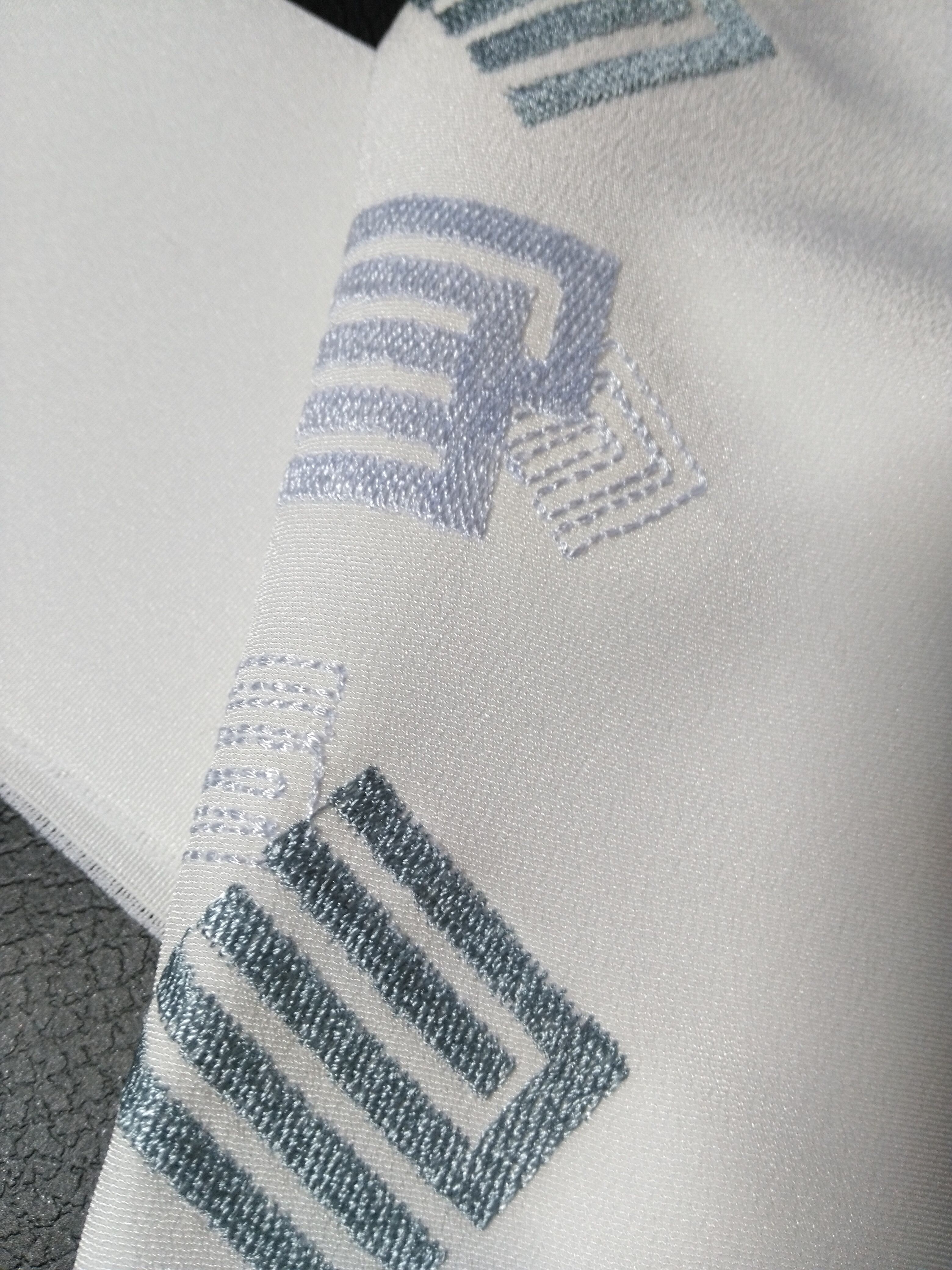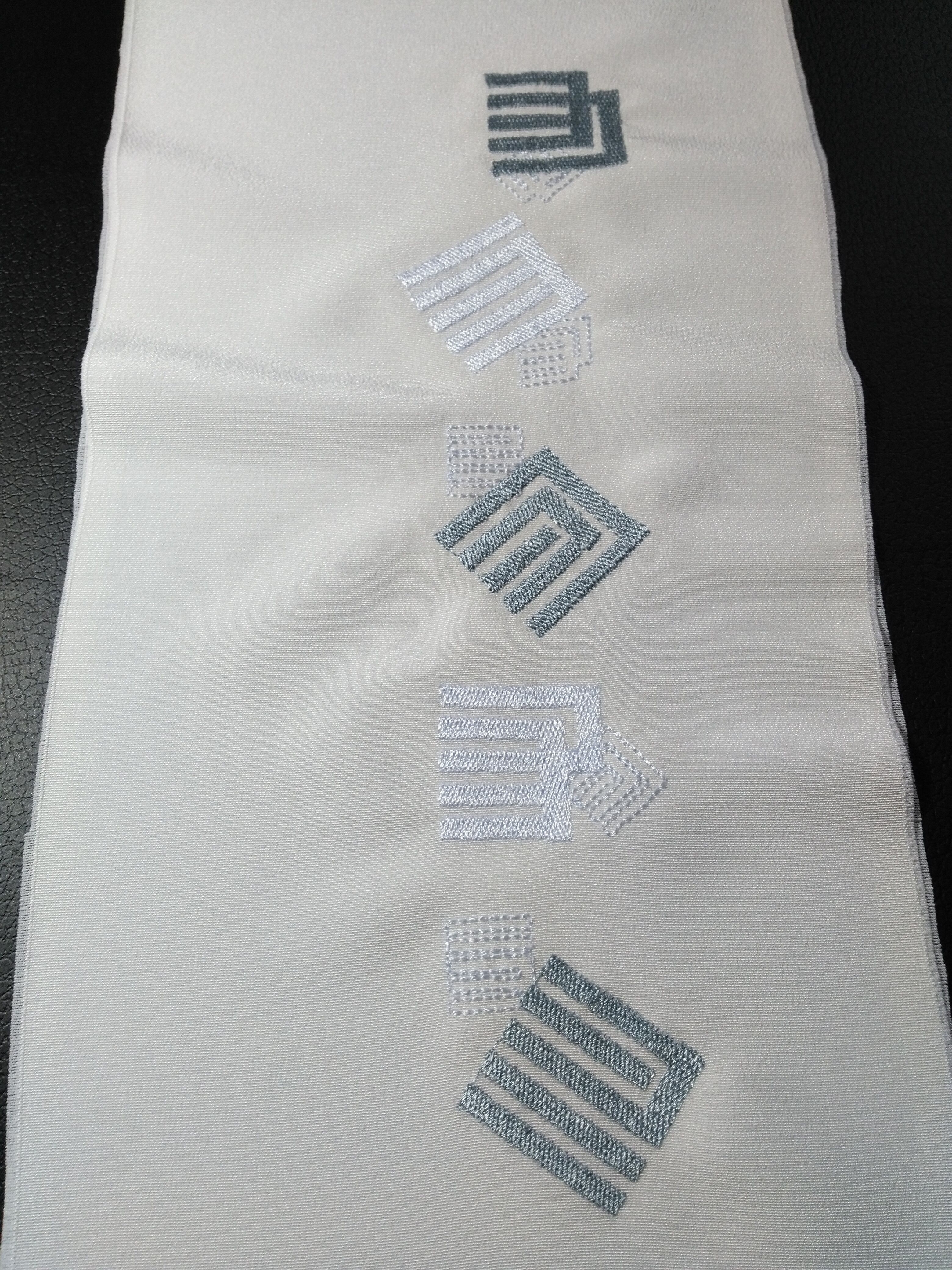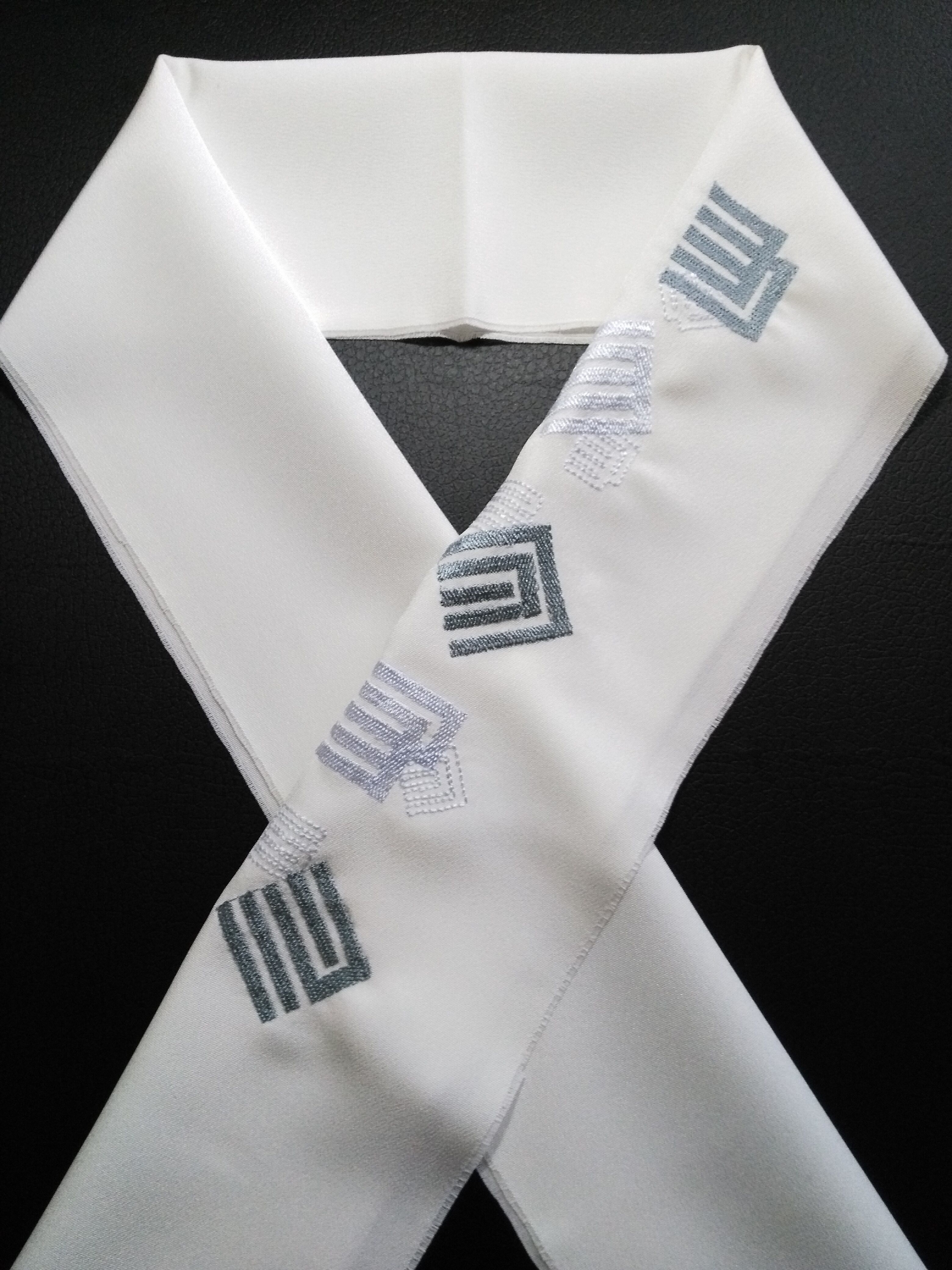 白い半衿にスモーキーブルーとライトブルーの2色で源氏香を刺繍しました。