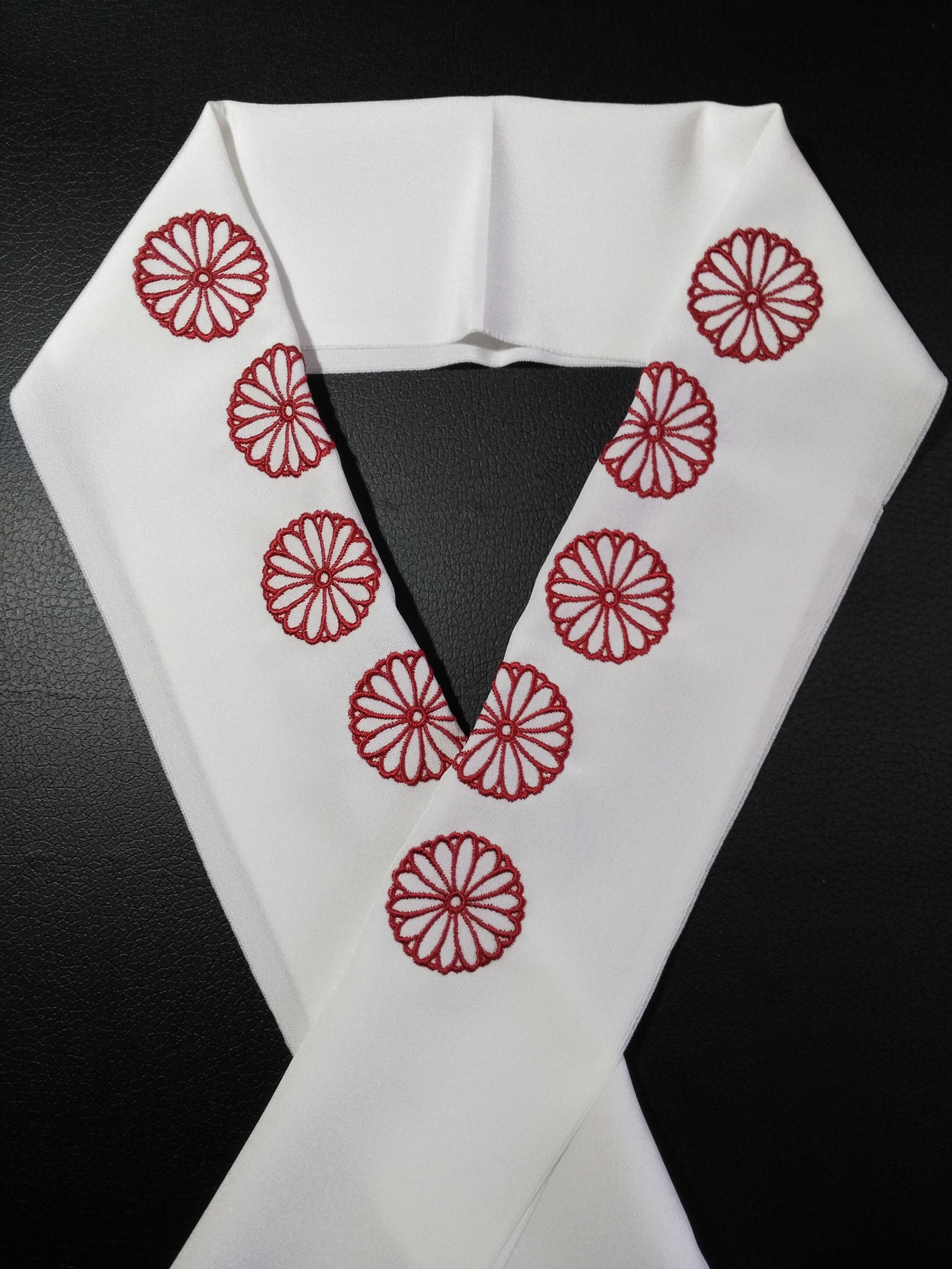 素 材:半衿は洗える塩瀬。糸はレーヨン。