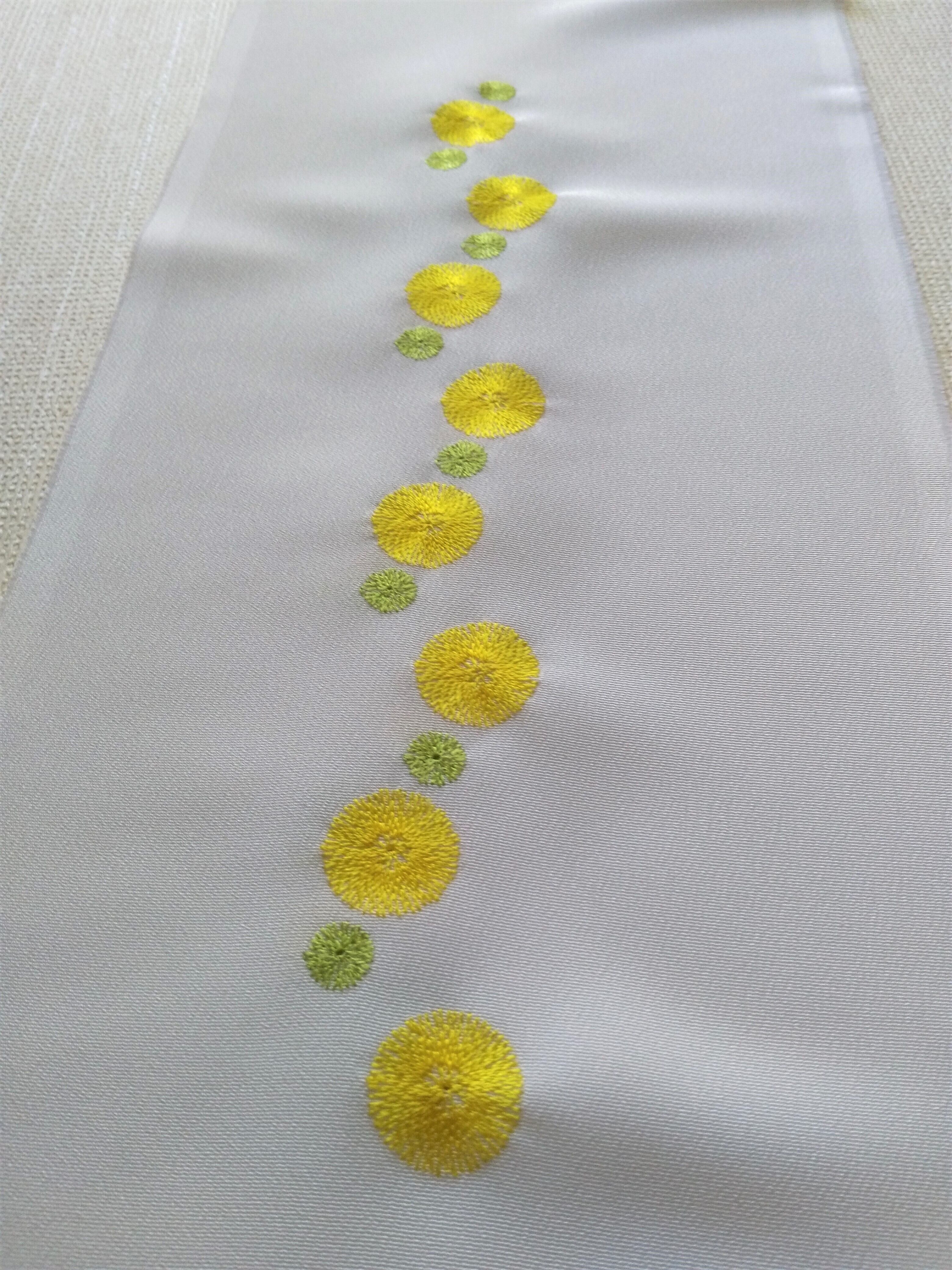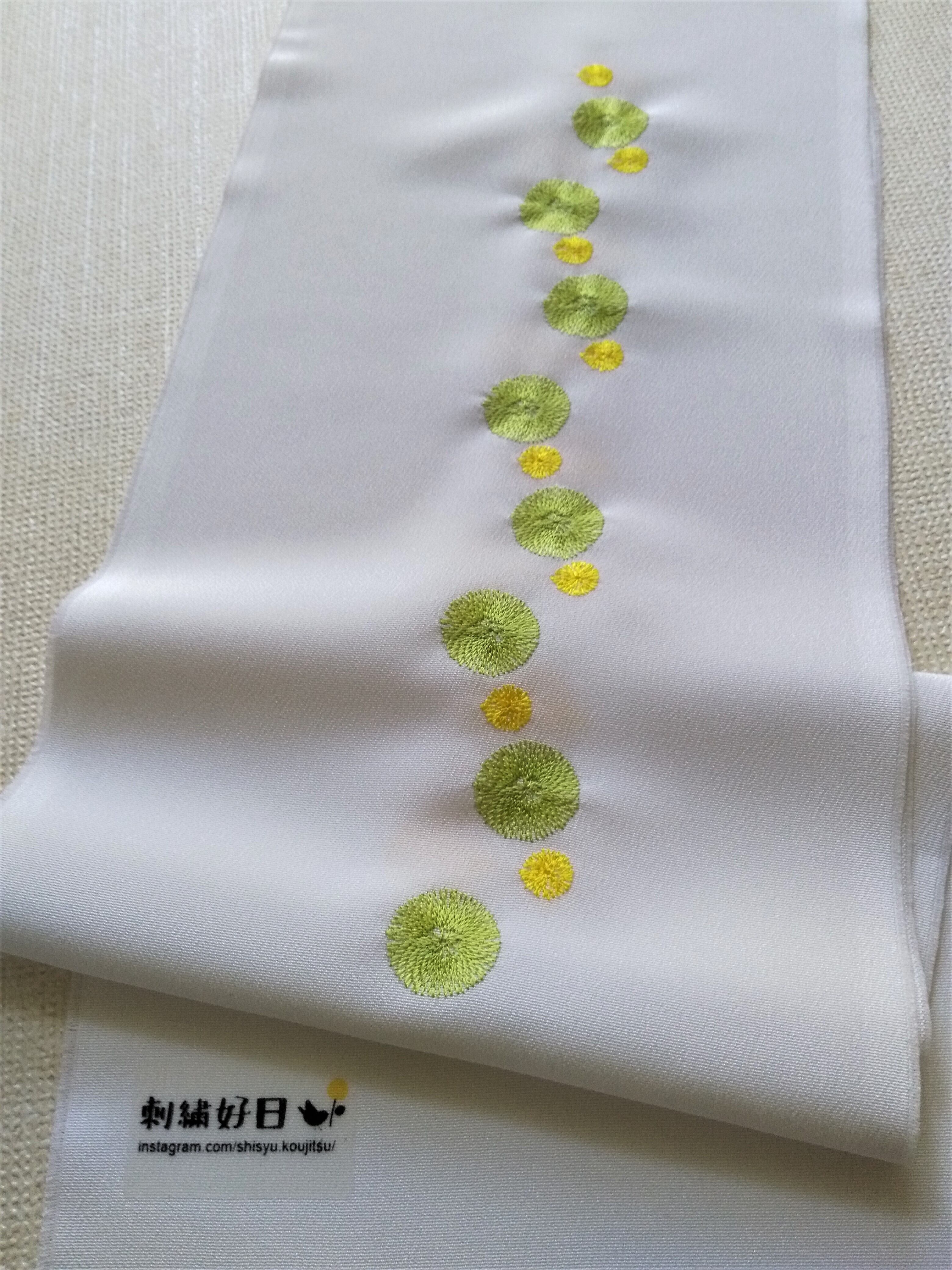 おはじき玉を昭和レトロな雰囲気で刺繍しました。