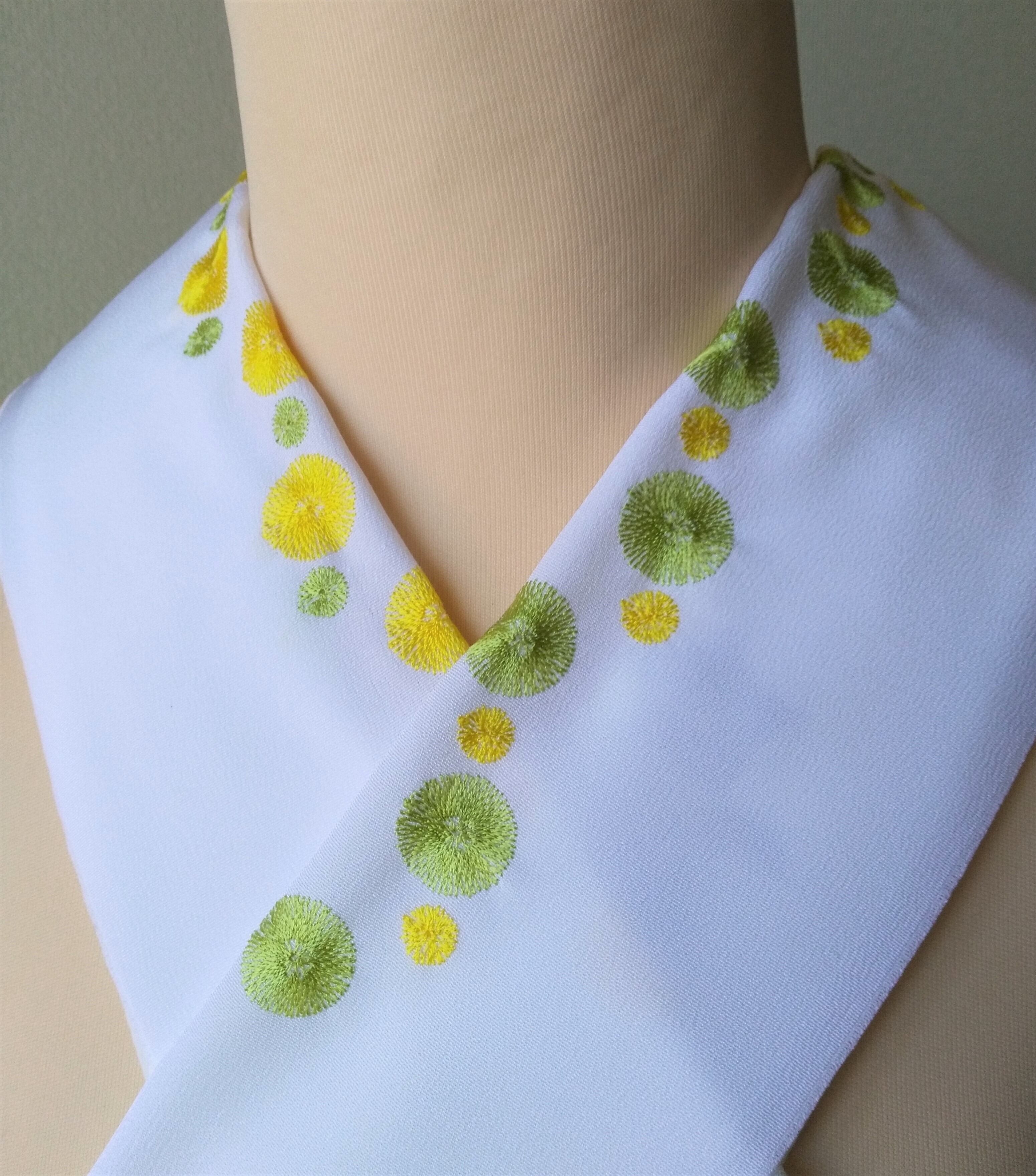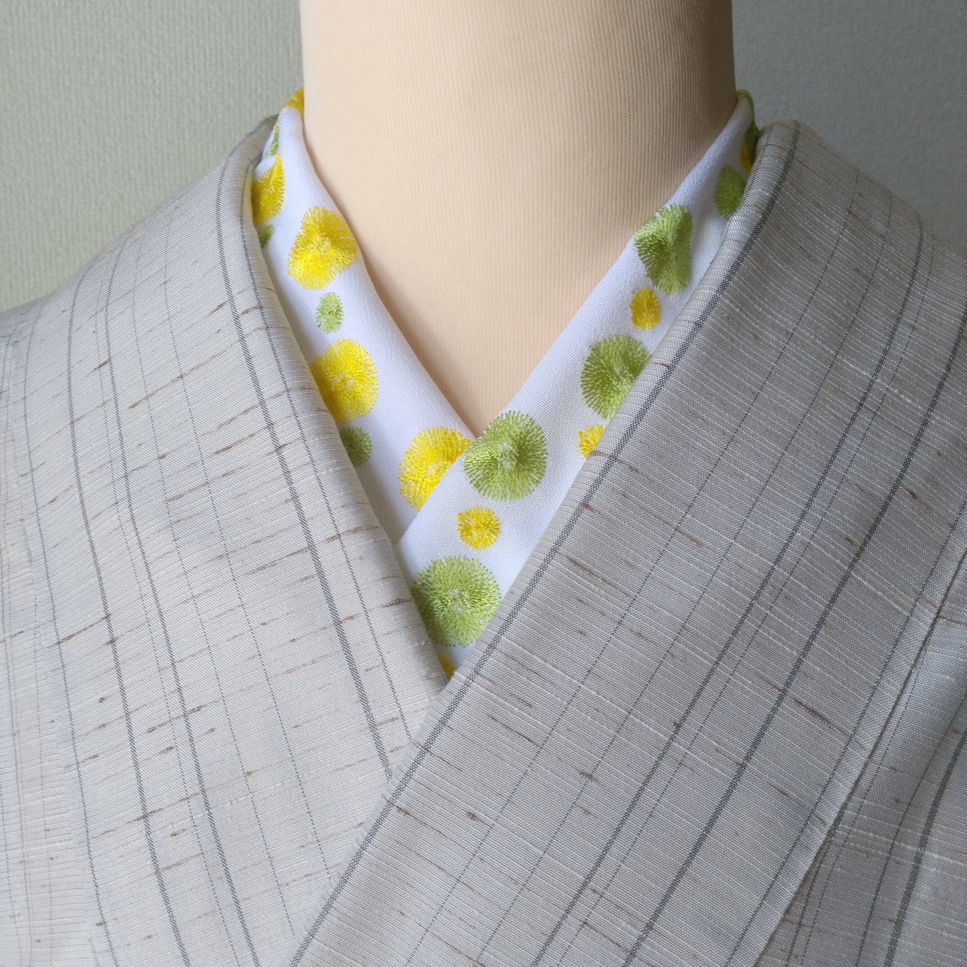 素 材:半衿は化繊。糸はポリエステル(段染め糸)。