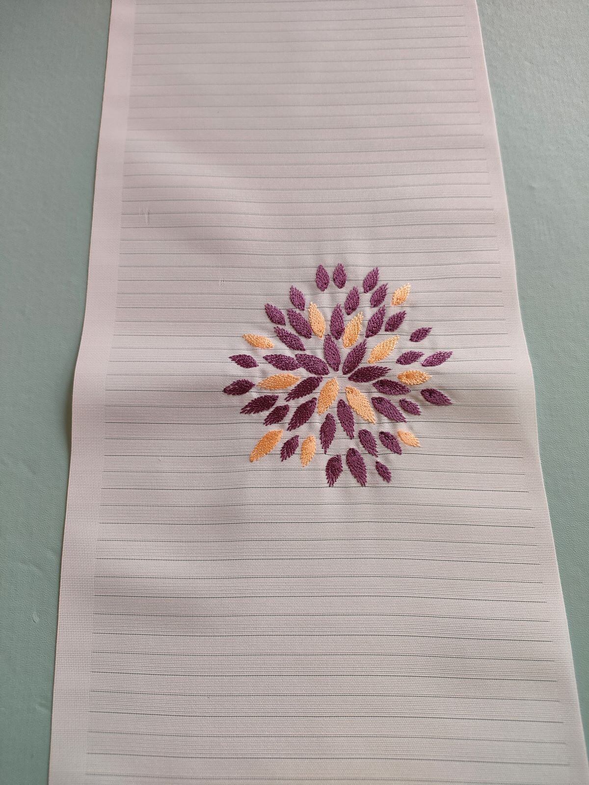 白い絽の半衿に「むじな菊」をワンポイントで刺繍しました。